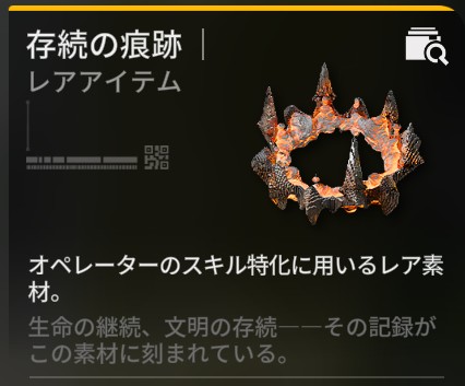 アークナイツ:エンドフィールドのスキル特化用レアアイテム「存続の痕跡」のゲーム内画像