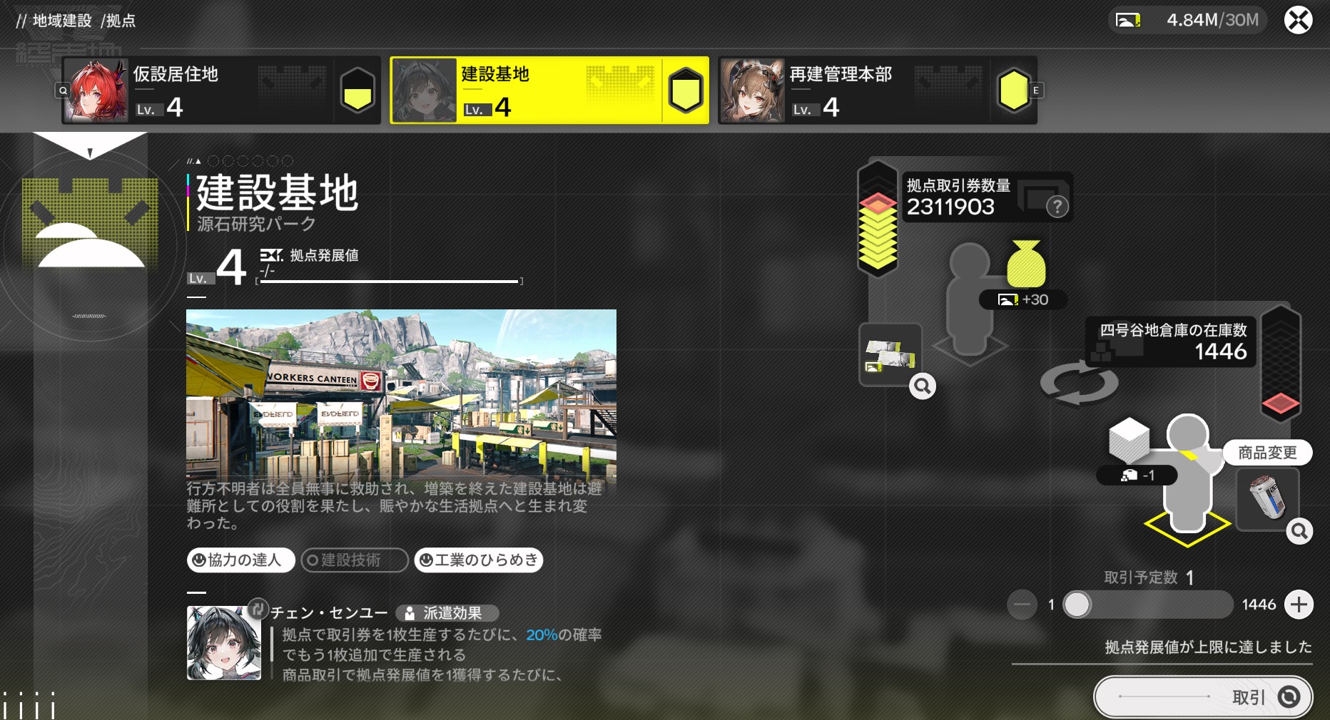 拠点レベルに加え、施設強化によっても建設値を獲得でき、地域建設レベルの上昇につながります。