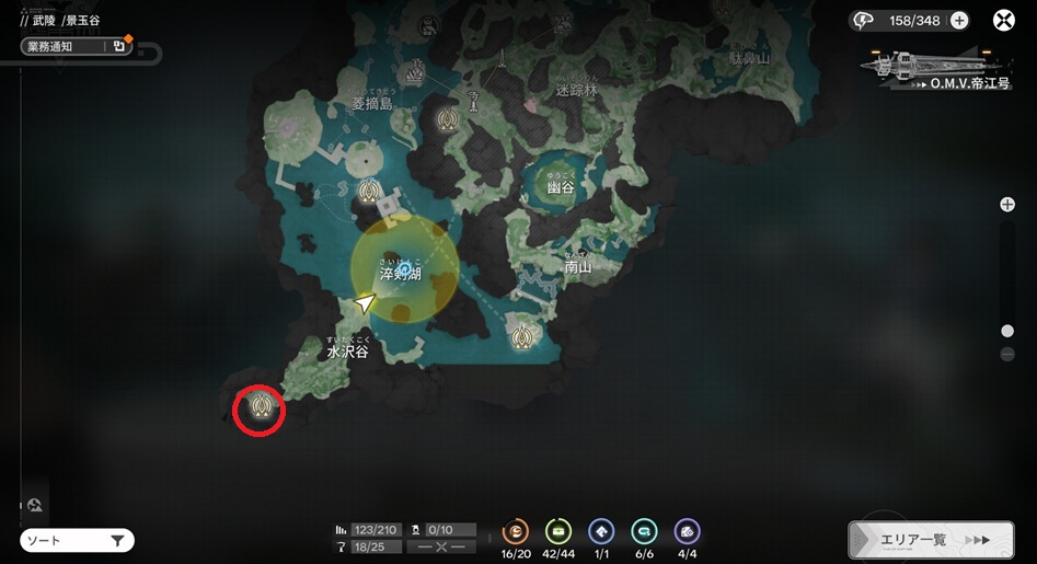 エンドフィールドの武陵|景玉谷の「水沢谷」付近の転送ポイント